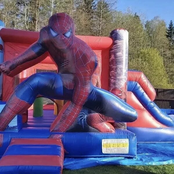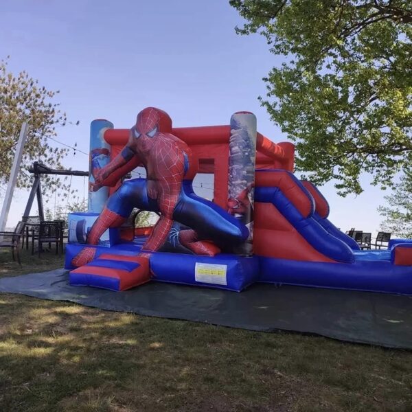 Spiderman piepūšamā atrakcija ar slīdkalniņu, šķēršļiem un lēkājamo zonu. Piepūšamās atrakcijas izmērs: 7x4 m