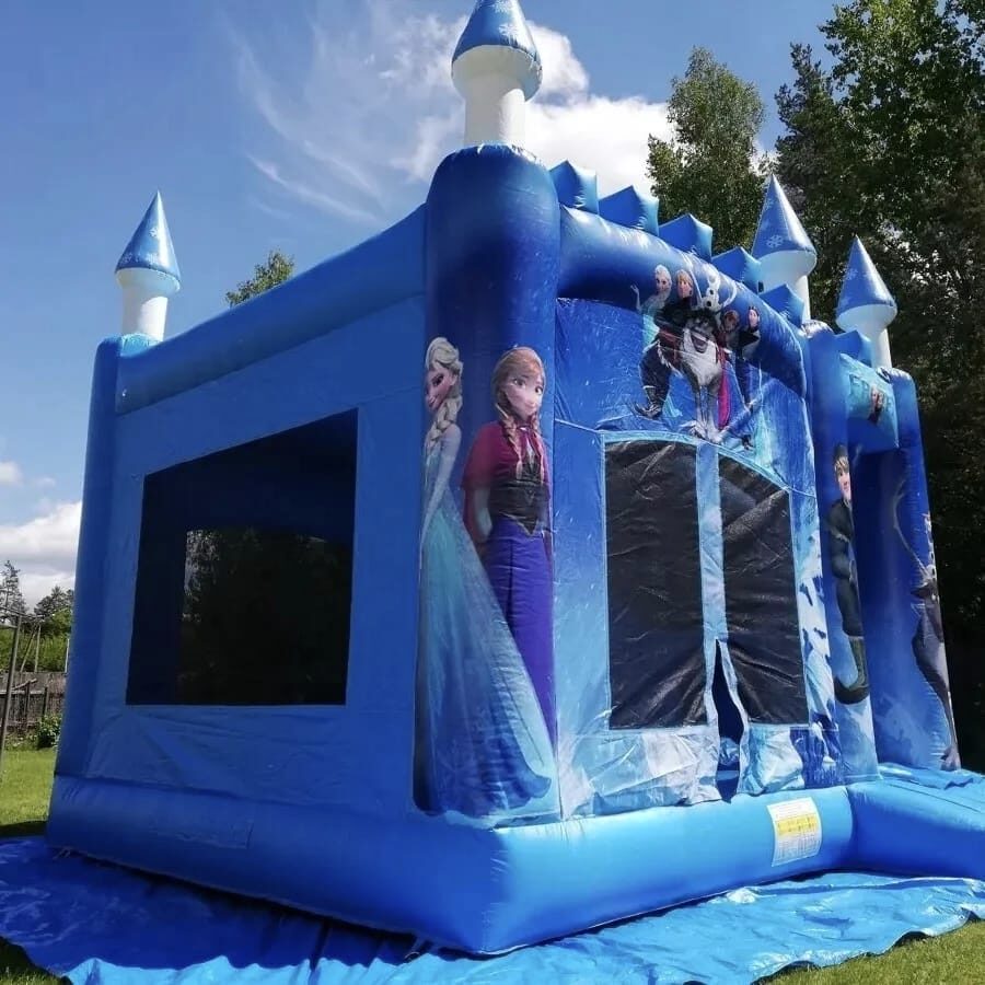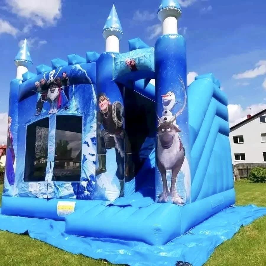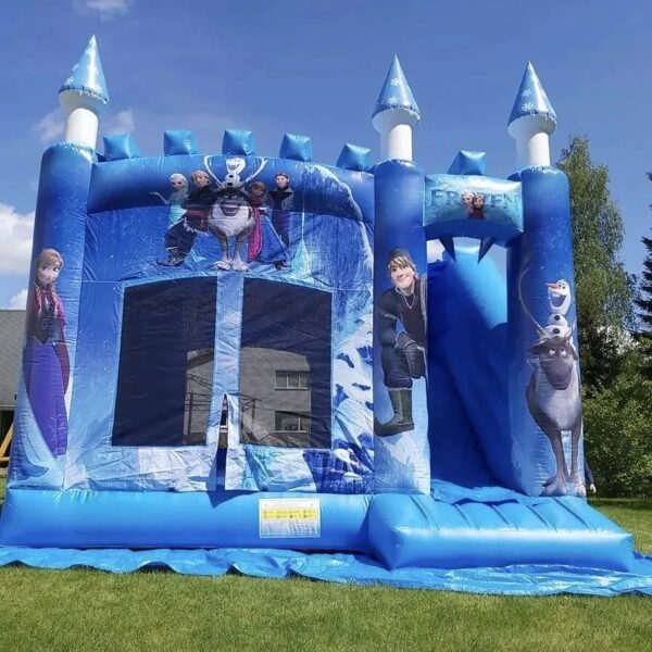 Frozen piepūšamā atrakcija ar augstu slīdkalniņu un lielu lēkājamo zonu. Piepūšamās atrakcijas izmērs: 5x5 m
