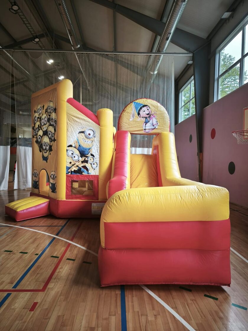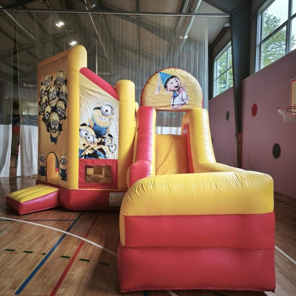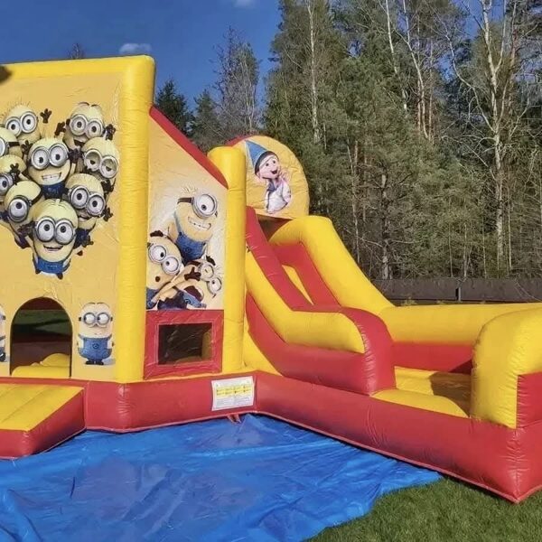 Minions piepūšamā atrakcija ar slīdkalniņu, šķēršļiem un lēkājamo zonu. Piepūšamās atrakcijas izmērs: 7x4.5 m